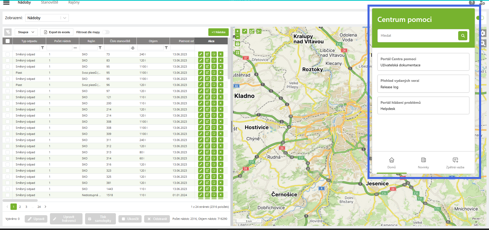 V modulech nové generace (PD3) je k dispozici systém pro podporu uživatelů. V levém horním rohu najdete ikonu Centra pomoci, po jejímž rozkliknutí se zobrazí okno s následujícími možnostmi: