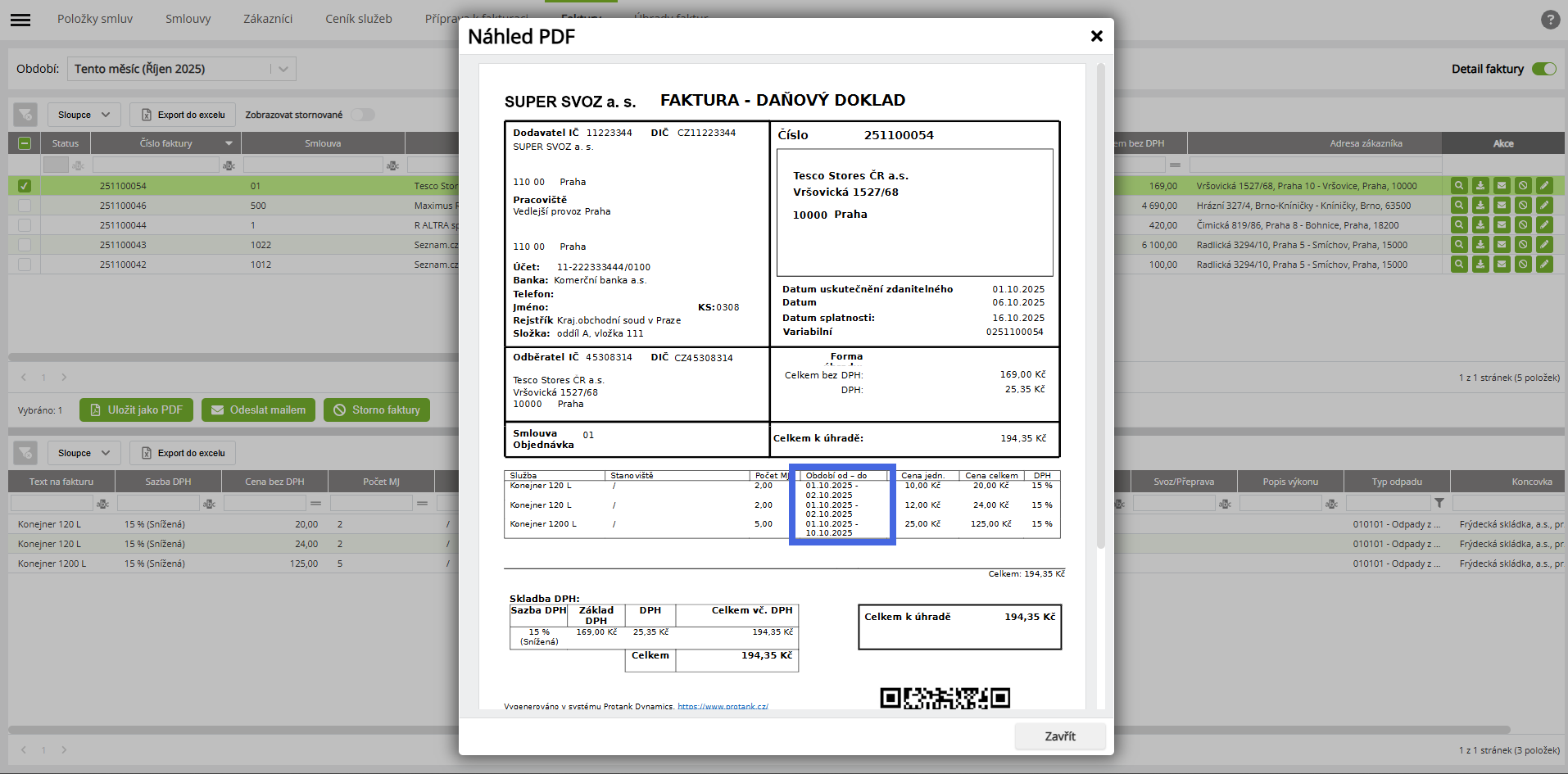 Nově se položky na faktuře řadí podle data platnosti „Do“, a to od nejnovějších po nejstarší.