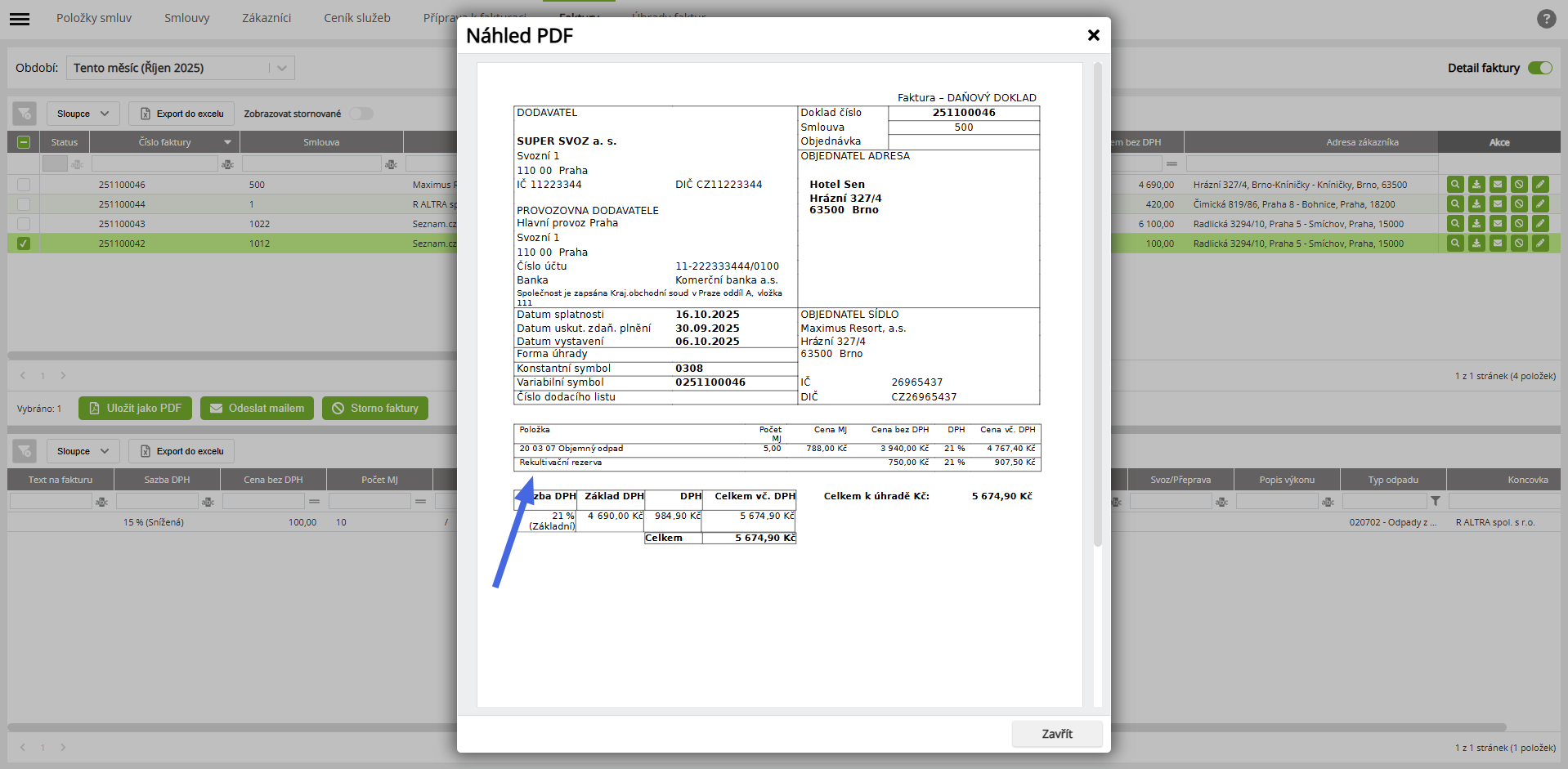 Položky k fakturaci typu Odpad nově nezobrazují položky „Poplatek za uložení“ ani „Rekultivační rezerva“, pokud mají hodnotu 0 – a to ani v případě, že uživatel tuto hodnotu do položky ručně zadá.