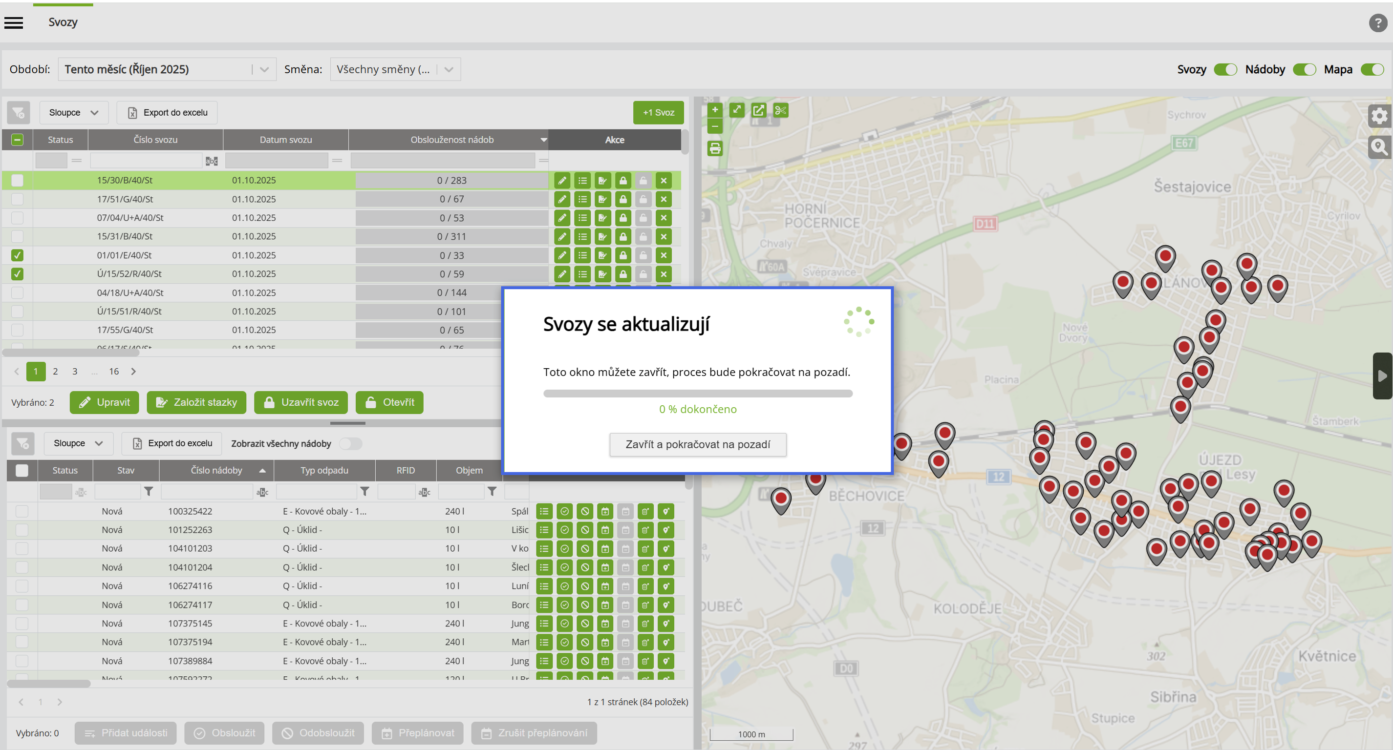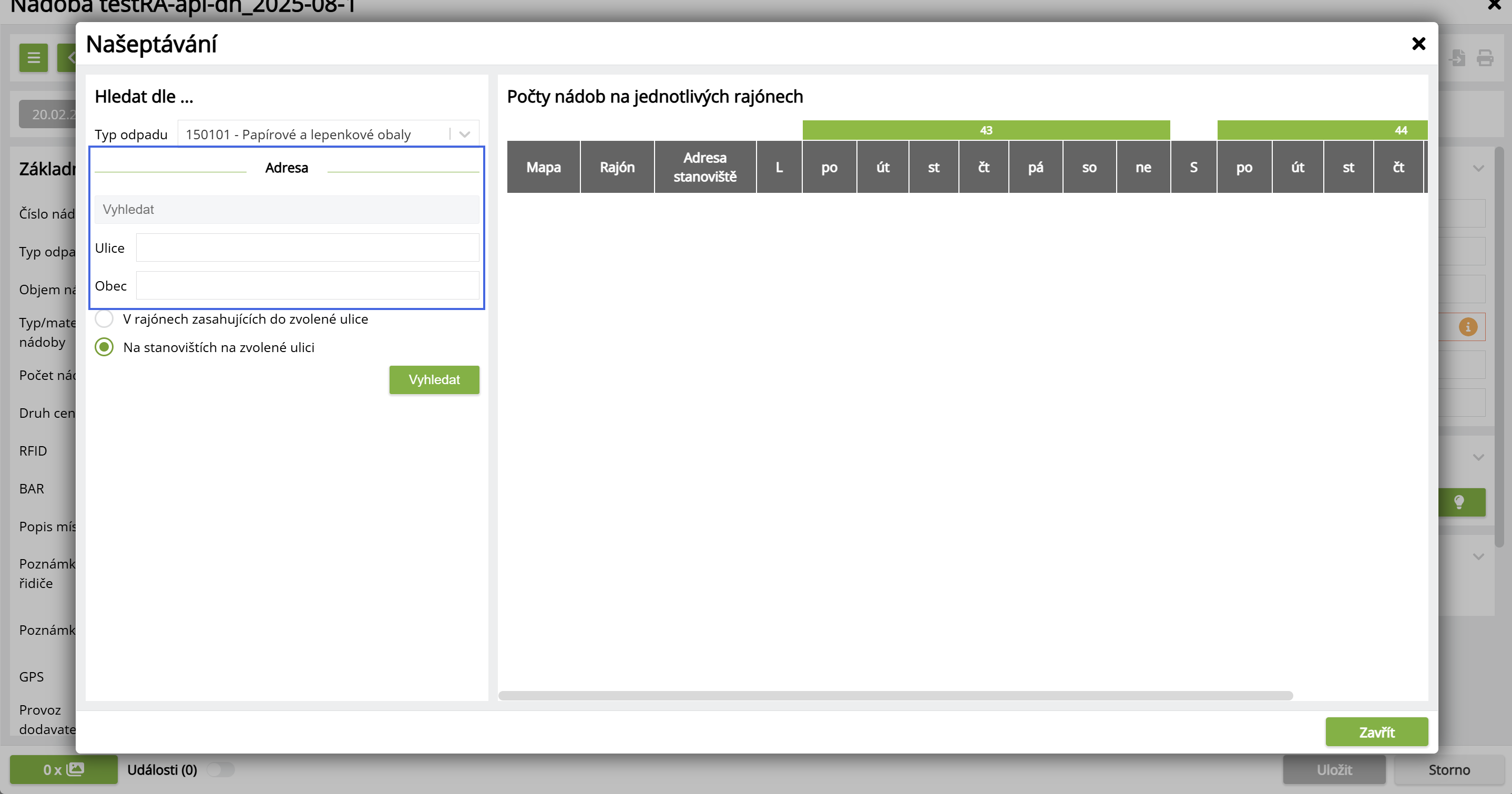 Při zadávání frekvence obsluhy v editaci nádoby bylo upraveno našeptávání adres. Vyhledávání nyní probíhá podle zadané obce nebo ulice, takže je rychlejší a přehlednější. Řádek s úplnou adresou byl odstraněn.