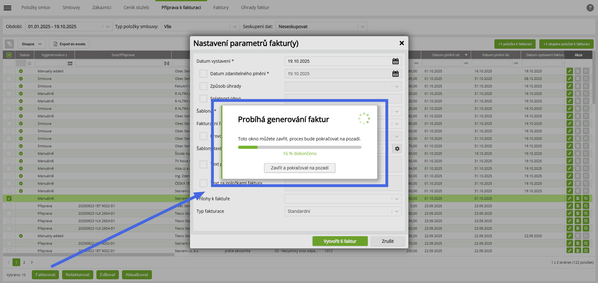 Nový progress bar pro hromadné generování faktur