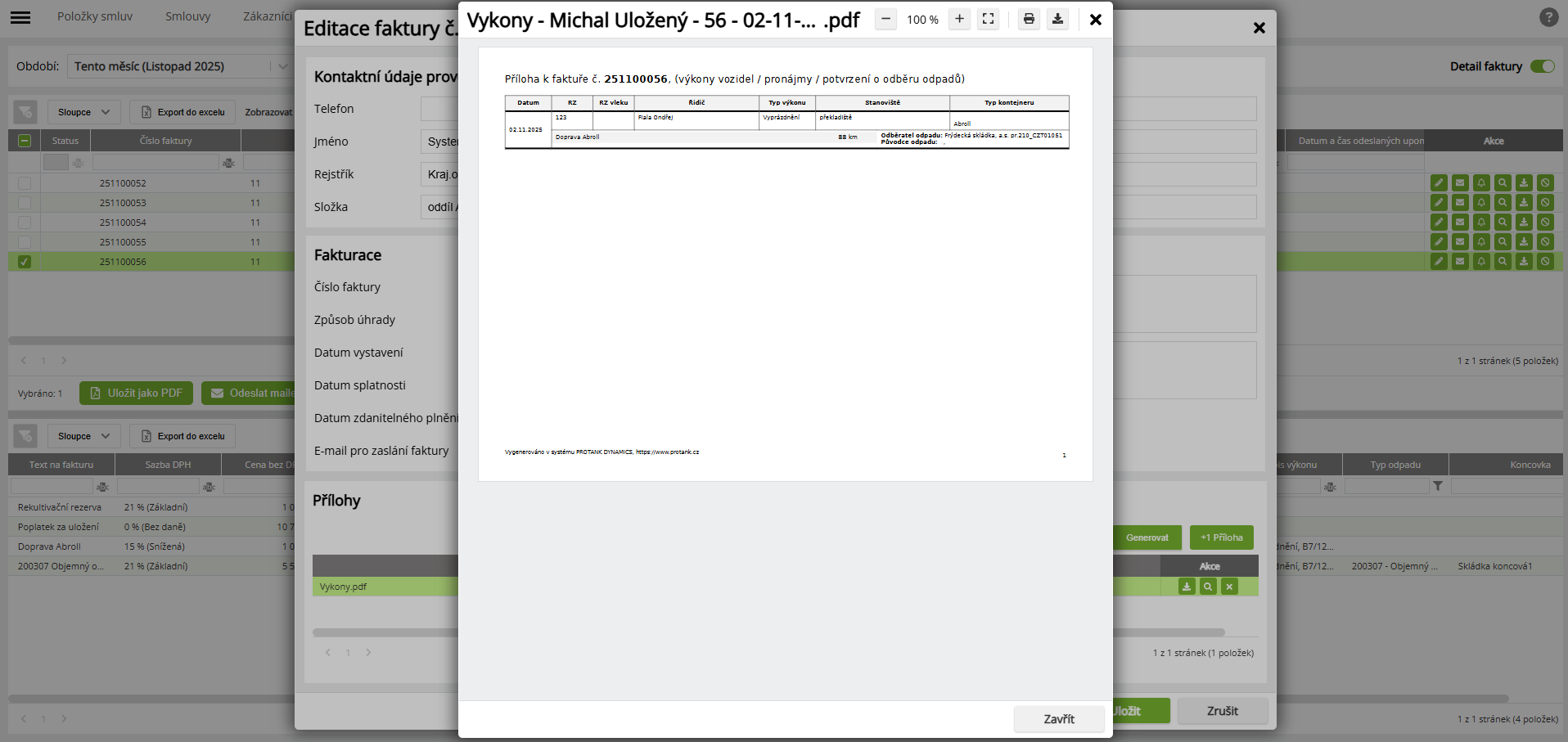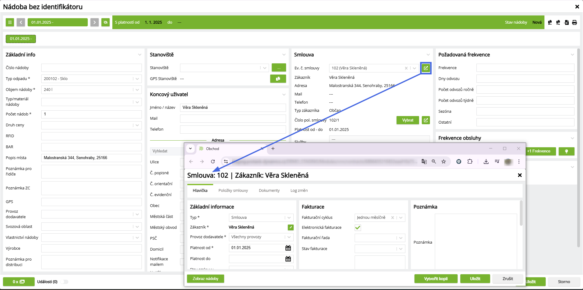 Zobrazení smlouvy z modulu nádoby