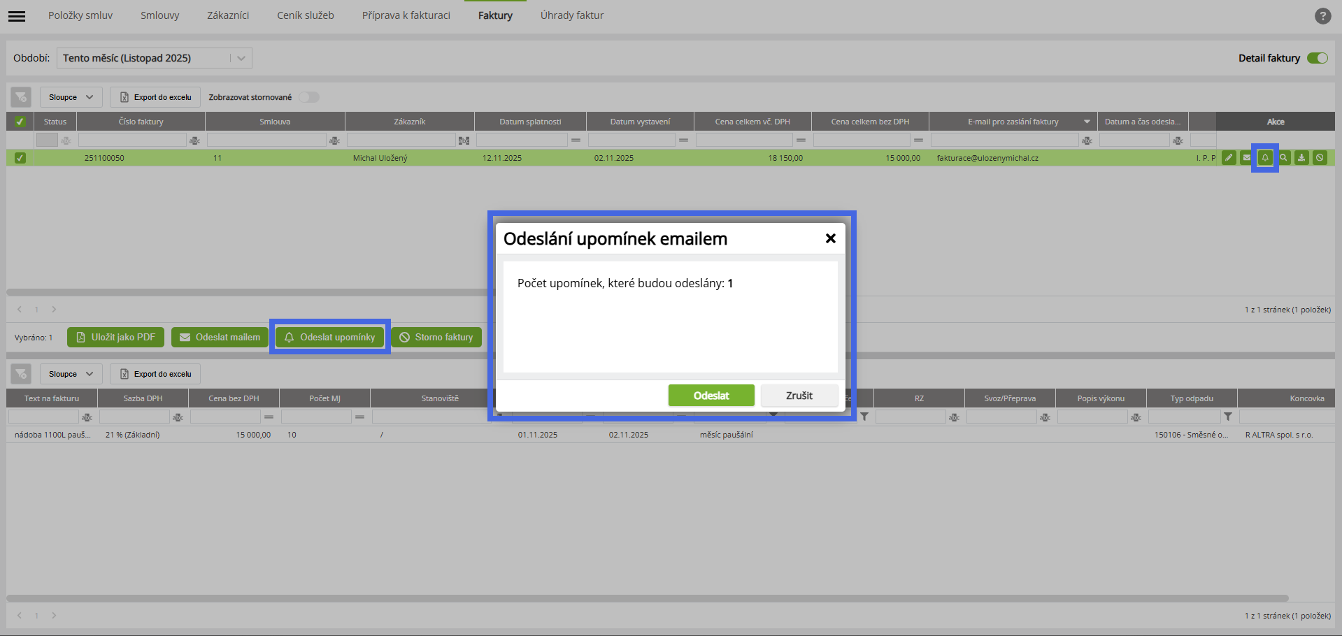 Fakturace - Odeslat upomínku k zaplacení faktury