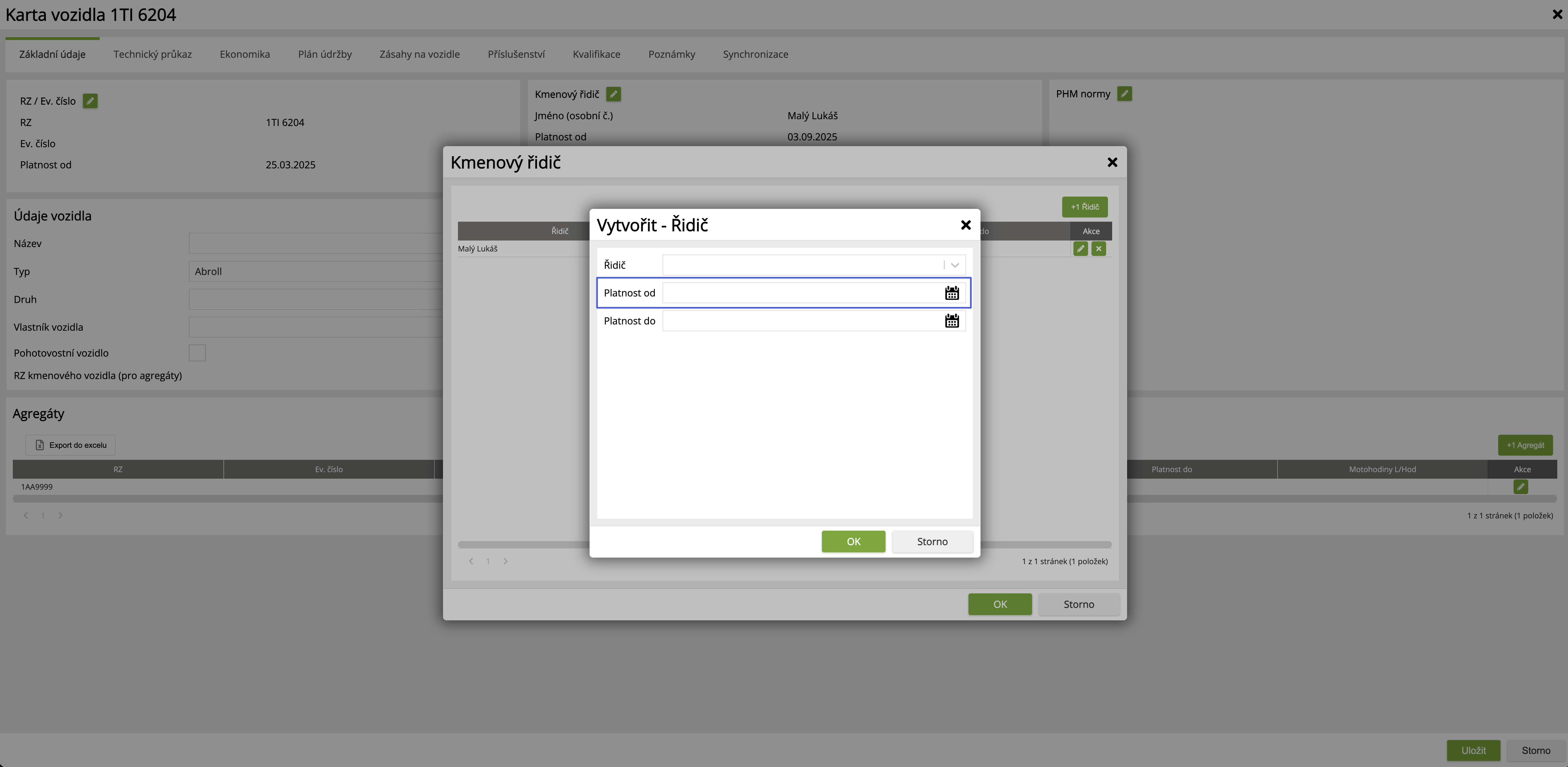 Změna políčka Platnost od při vkládání nebo editaci kmenového řidiče v kartě vozidla na povinný údaj.